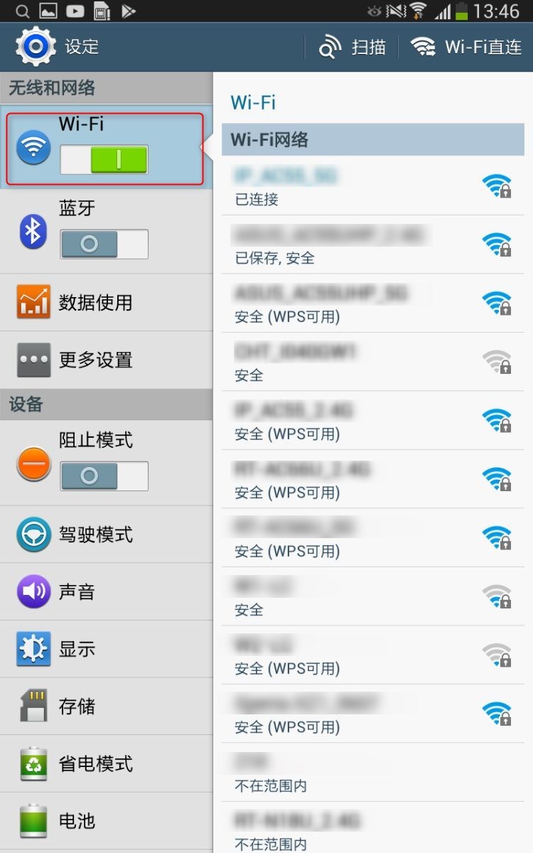 2. 点击 Wi-Fi 选项打开 Wi-Fi 列表